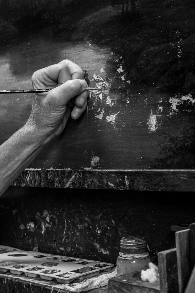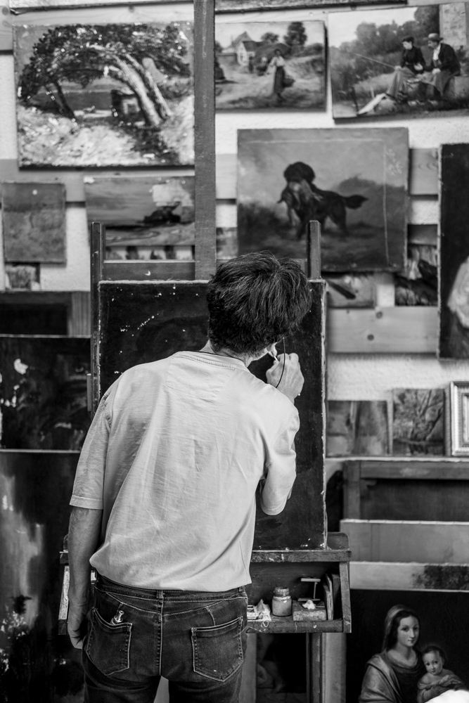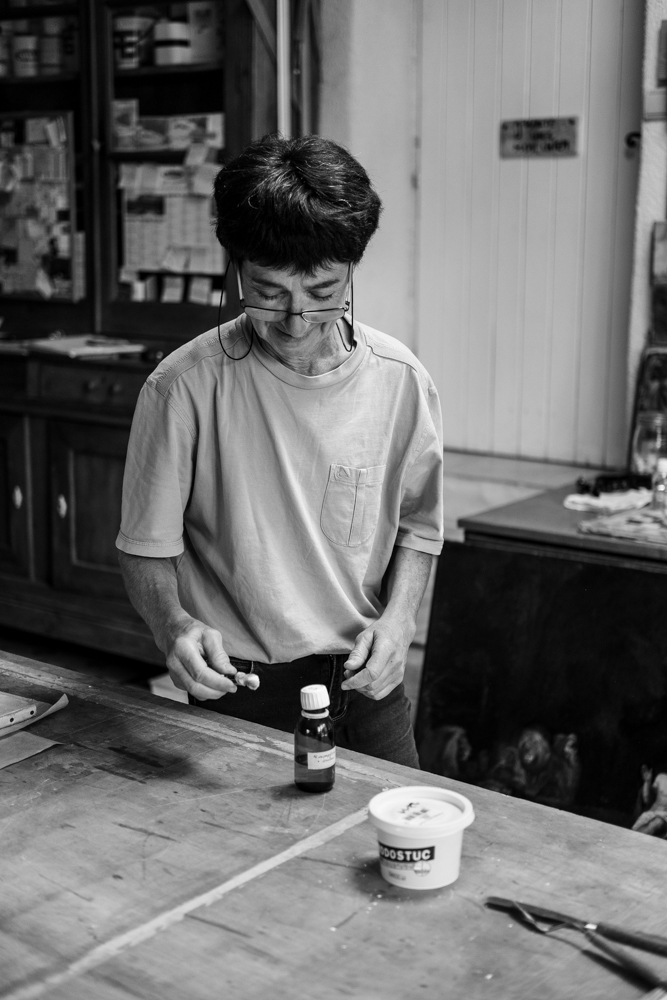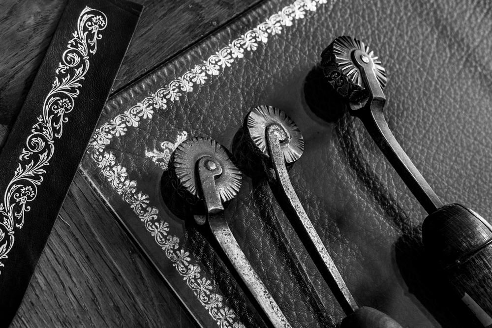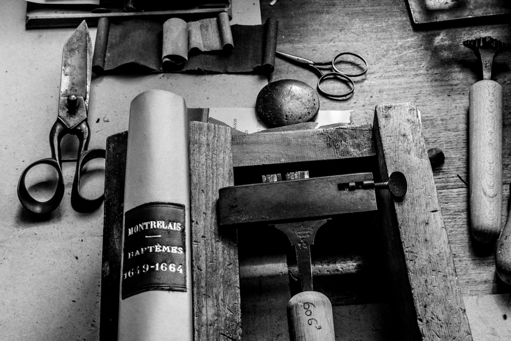 Charles Edouard Seguin a repris l’atelier familial de reliure dorure Seguin. Il restaure des ouvrages mais aussi des mobiliers dont les dorures ont été abîmées par le temps.